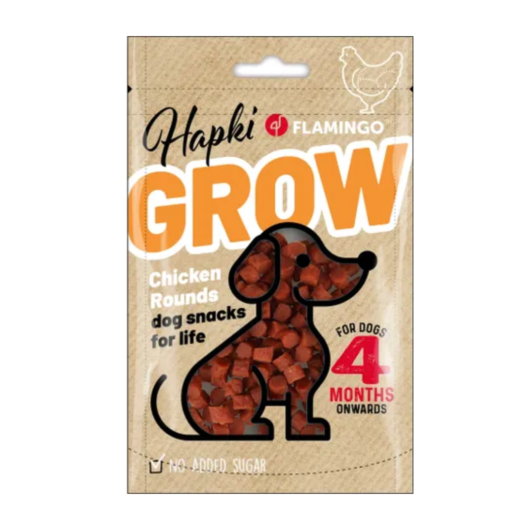 Treat your pup to the snack Hapki Grow chicken rounds! Made especially for dogs from 4 months old and with no added sugars. A delicious treat for your loyal four-legged friend.