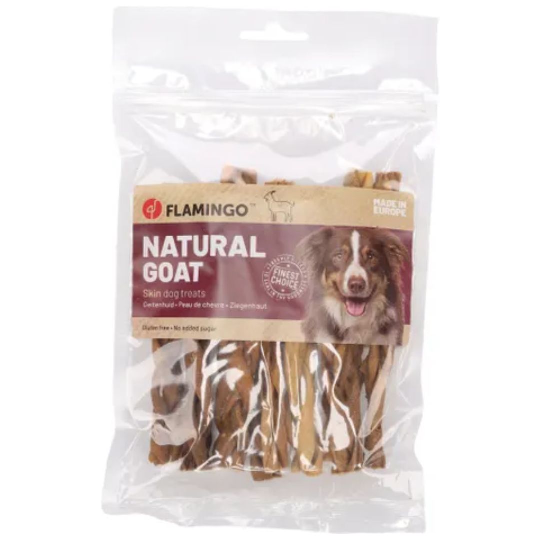 Treat your furry friend to this delicious snack of thin goat hide! Gluten-free, no added sugars, dyes or preservatives. All-natural and perfect for a satisfying chew. Please note: dimensions and weight per piece may vary.