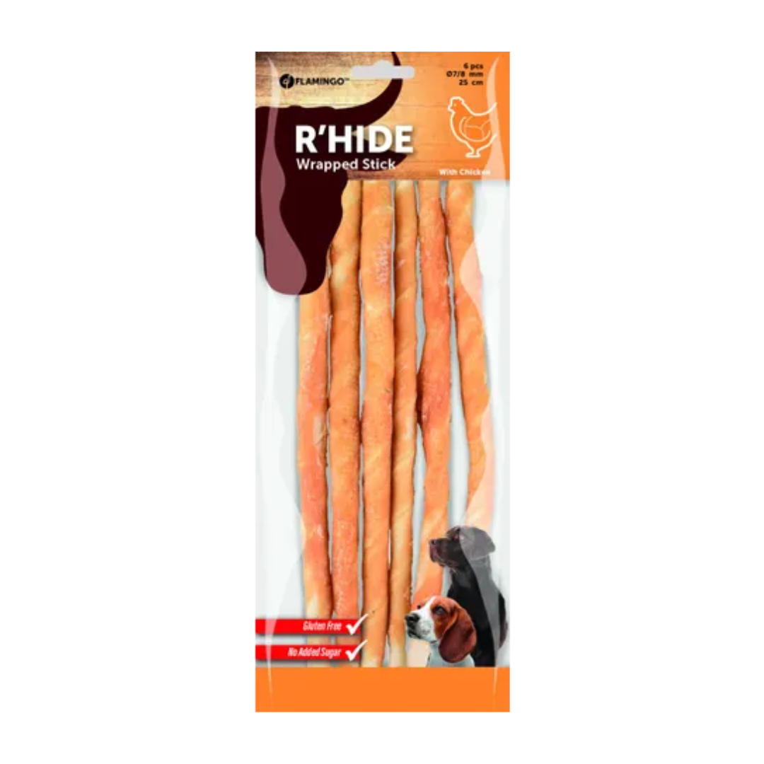 The R'Hide Wrapped Stick is a delightful snack made of beef hide and chicken. It's perfect for those relaxing chewing moments and incredibly tasty! The package contains 6 sticks, each measuring 25 cm.