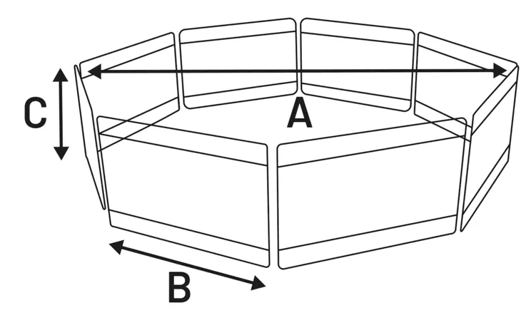 ‣ Adjustable Shape: 8 panels can be assembled in various configurations.