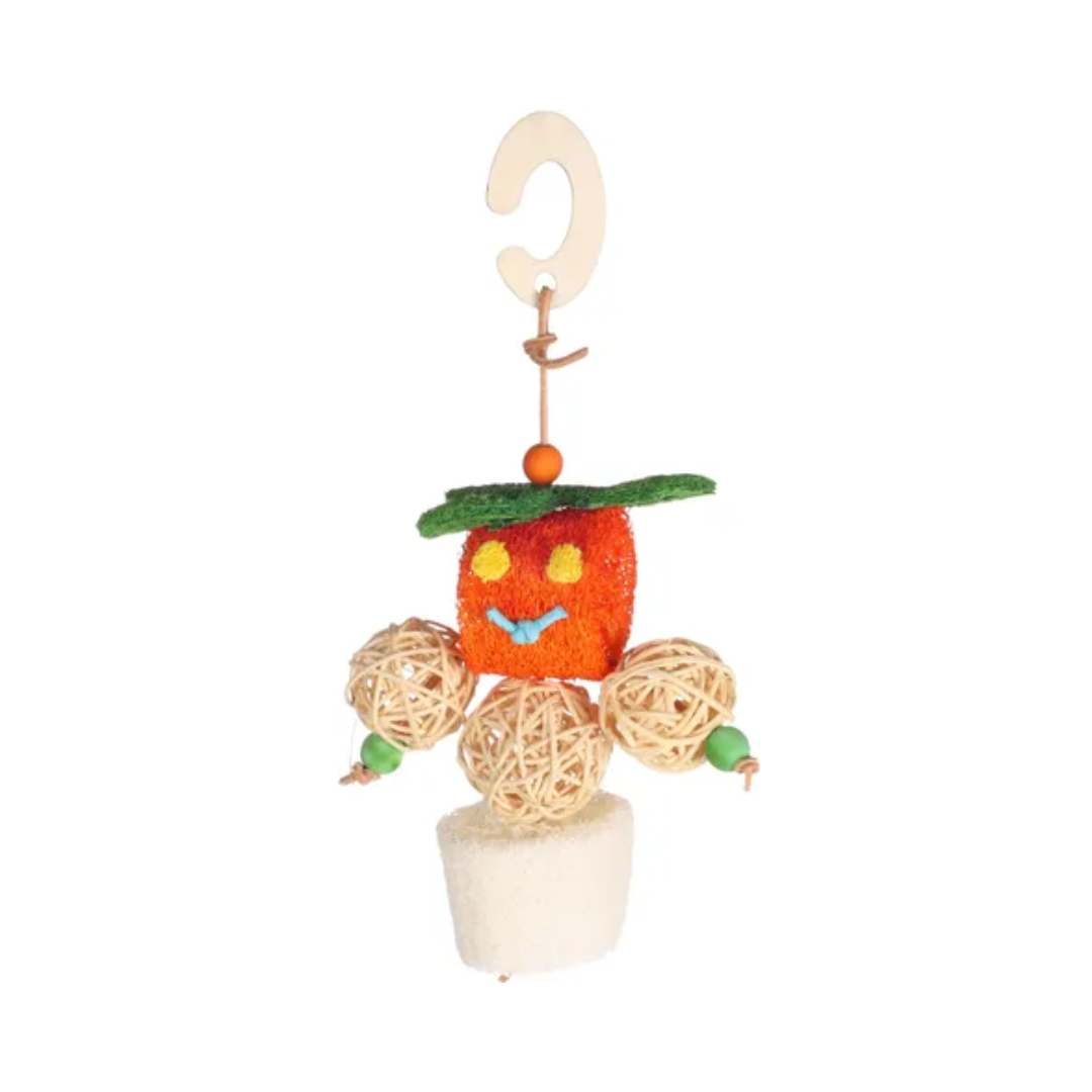 This chew toy is made from natural materials like loofah, rattan, wood, and leather. Perfect for keeping teeth short and healthy. Simply hang it up with the wooden hanging hook. A delightful treat for your furry friend!