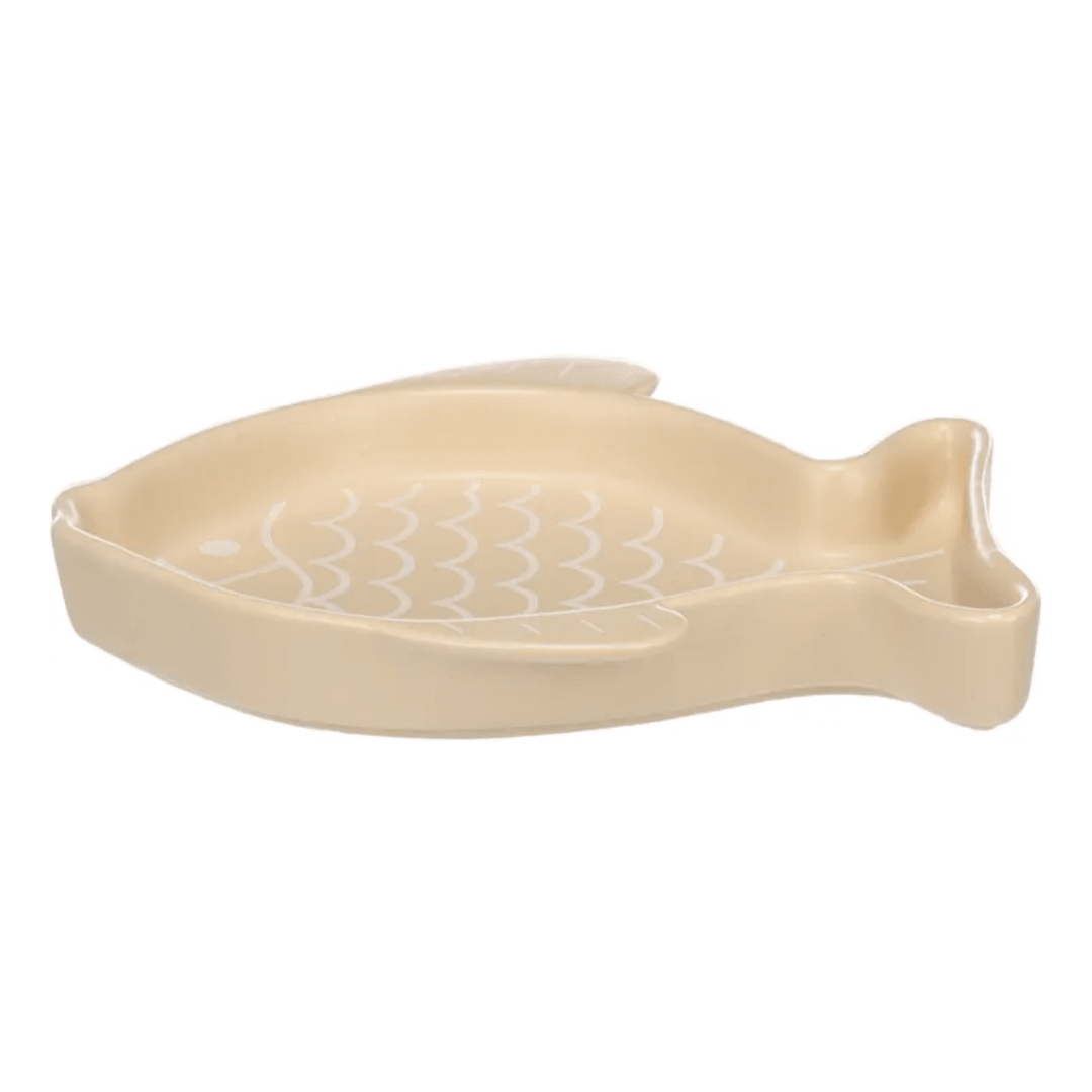 Treat your cat to a stylish feast with this adorable food and water bowl in chic beige with a fish design! Made from glazed ceramic and dishwasher safe, it provides a visual treat for your furry friend during every meal.