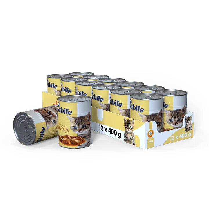 • PETBITE Kitten Chicken Chunk in Jelly 12x400g (SKU 84063) – High-protein wet food to encourage lean muscle development, brain growth, and hydration.