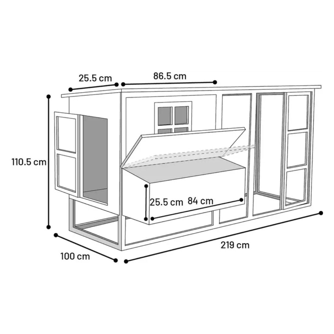 ‣ Weight/Quantity/Size: 1 coop with run, 222.2cm L x 102cm W x 111.5cm H