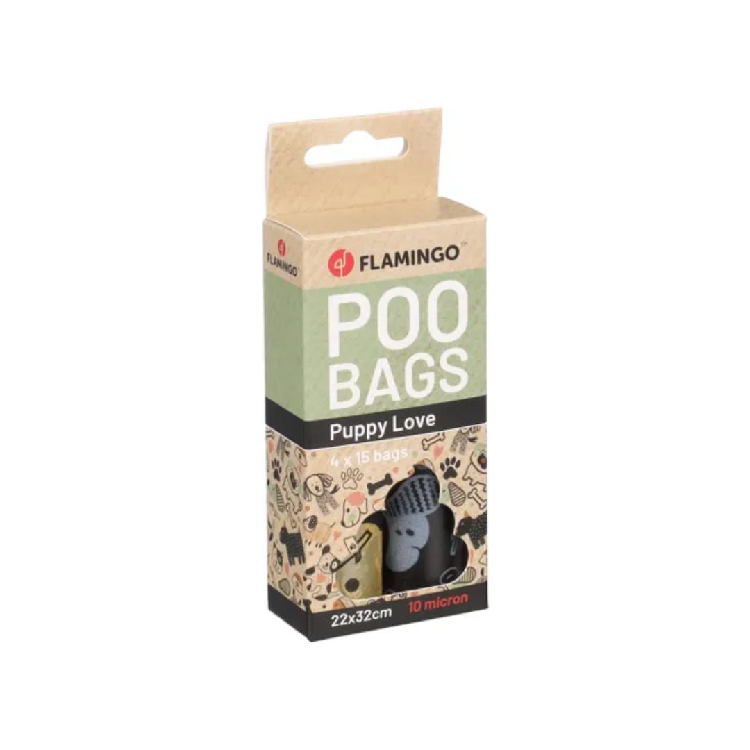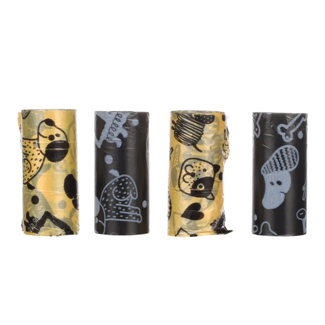 With these adorable puppy poop bags, you can keep your furry friend's surroundings clean and fresh! The set includes 4 rolls, each containing 15 bags made of durable PE plastic. Each bag measures 220 x 320 mm and has a thickness of 10 microns. Perfect for when you're on the go!