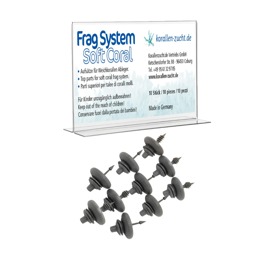 Patented attachment tops for mounting soft coral frags, designed to work with the reusable base system. Includes two types (screw and spike) for secure, invisible placement in the reef.