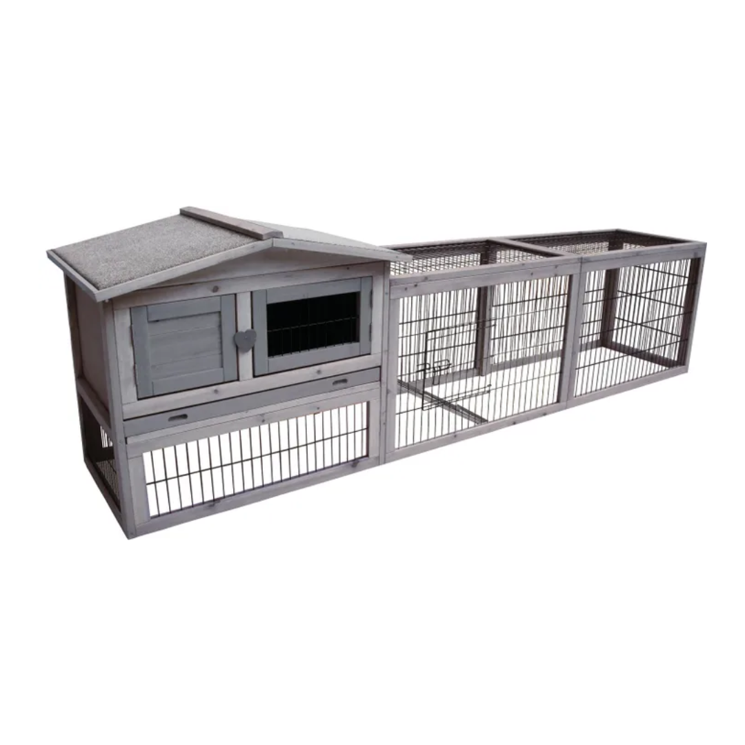 Give your bunnies the space to play and relax with the Sofia Jumbo II rabbit hutch. It boasts a beautiful design and an extra-long run that can be attached. The roof is easily opened and there are multiple doors for optimal access. The hutch is also easy to clean thanks to the slide-out tray.